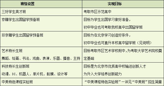 依据相关教育政策法规,我校可在全市范围内实行自主招生,凡被我校录取的学生不再参加北京市各区县小学毕业生电脑派位,由我校发给正式录取通知书,并按通知的时间办理相关入学手续。初三学生毕业考试合格,颁发北京市初中毕业证书。应届毕业生均可参加北京市统一中考。